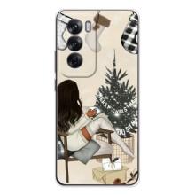 Рождественские, Праздничные Чехлы для Оппо Рено 12 - Девушка с елкой