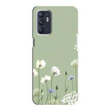 Чехол с цветочным принтом на Оппо Рено 6 (5G) - Цветы на зеленом