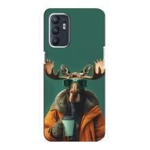 Чехол с принтом стильные животные для Оппо Рено 6 (5G) - Лось с кофе