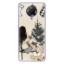 Рождественские, Праздничные Чехлы для Поко Ф2 Про - Девушка с елкой
