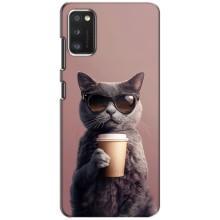 Чехол с принтом стильные животные для Поко М3 - Кот с кофе