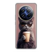 Чехол с принтом стильные животные для Реалми 12 Про Плюс - Кот с кофе