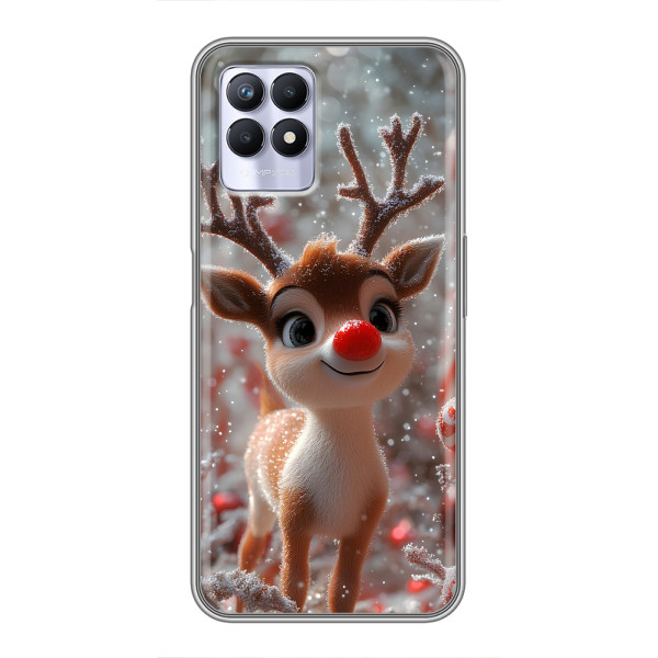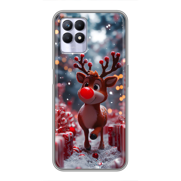 Зимняя коллекция принтов с тёплым сказочным настроением: Блестящий оленёнок, Олень в свитере, Олень с носом, Олень с шарфом, Олень среди подарков, Оленёнок в лесу, Оленёнок среди гирлянд, Оленёнок — выбери свой любимый дизайн для Realme 8 Pro (Реалми 8 Про) и добавь праздничной магии каждый день.