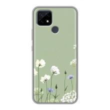 Чехол с цветочным принтом на Реалми С21 - Цветы на зеленом