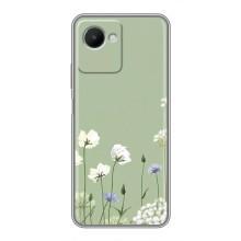 Чехол с цветочным принтом на Реалми С30s - Цветы на зеленом