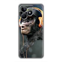 Чехол с Обезьянами Realme C53 - (AlphaPrint) - В наушниках