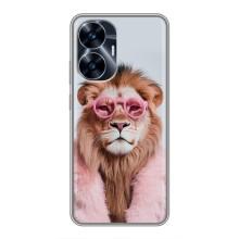 Чехол с принтом стильные животные для Реалми С55 - Лев в очках