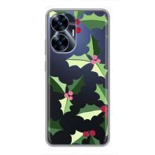 Зимние Чехлы для Реалми С55 - прозрачный фон - Рождественский фон