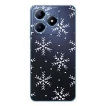 Зимние Чехлы для Реалми С63 4G - прозрачный фон - Белые снежинки