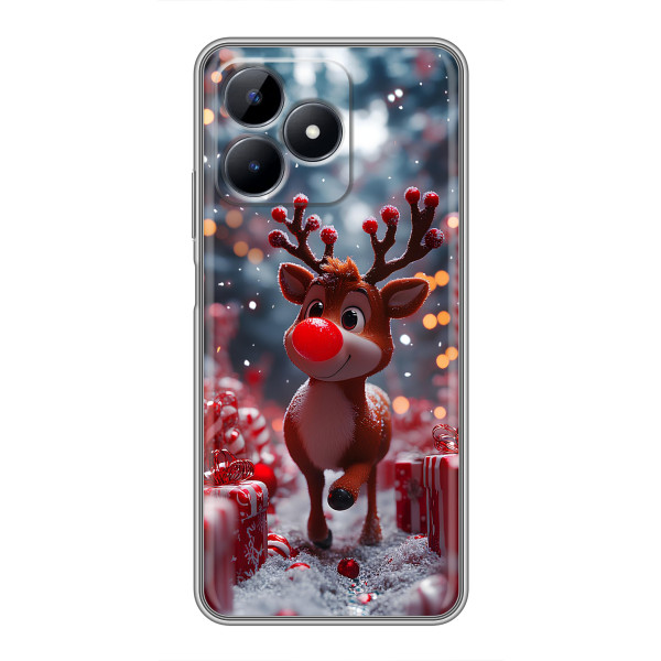 Зимняя коллекция принтов с тёплым сказочным настроением: Блестящий оленёнок, Олень в свитере, Олень с носом, Олень с шарфом, Олень среди подарков, Оленёнок в лесу, Оленёнок среди гирлянд, Оленёнок — выбери свой любимый дизайн для Realme Note 50 (Реалми Ноут 50) и добавь праздничной магии каждый день.