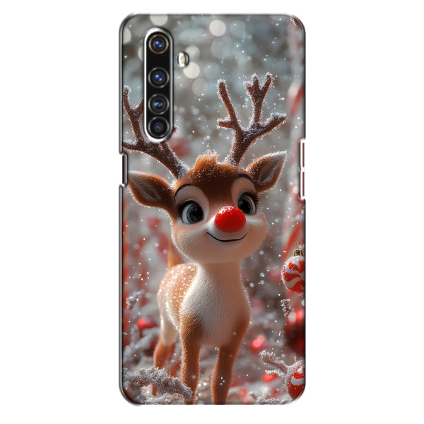 Зимняя коллекция принтов с тёплым сказочным настроением: Блестящий оленёнок, Олень в свитере, Олень с носом, Олень с шарфом, Олень среди подарков, Оленёнок в лесу, Оленёнок среди гирлянд, Оленёнок — выбери свой любимый дизайн для Realme X50 Pro (Реалми Х50 Про) и добавь праздничной магии каждый день.