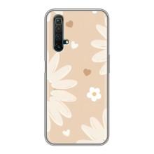 Чехол с цветочным принтом на Реалми Х50 - Бежевые цветы