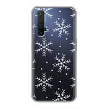 Зимние Чехлы для Реалми Х50 - прозрачный фон - Белые снежинки