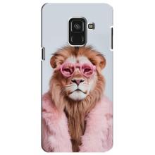 Чехол с принтом стильные животные для Самсунг А8 Плюс 2018, А730Ф - Лев в очках