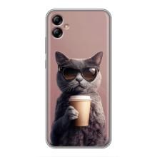 Чехол с принтом стильные животные для Самсунг А04е - Кот с кофе