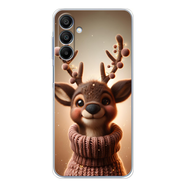 Зимняя коллекция принтов с тёплым сказочным настроением: Блестящий оленёнок, Олень в свитере, Олень с носом, Олень с шарфом, Олень среди подарков, Оленёнок в лесу, Оленёнок среди гирлянд, Оленёнок — выбери свой любимый дизайн для Samsung Galaxy A16 5G (Гелекси А16 5Джи) и добавь праздничной магии каждый день.