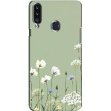Чехол с цветочным принтом на Самсунг А20с - Цветы на зеленом