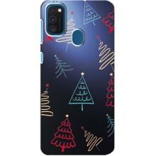 Зимние Чехлы для Самсунг А21с - прозрачный фон - Рождественские елки