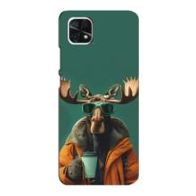 Чехол с принтом стильные животные для Самсунг А22 (5G) - Лось с кофе