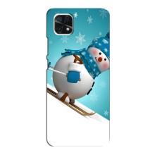 Новогодние Чехлы для Самсунг А22 (5G) (VPrint) - Снеговик на лыжах