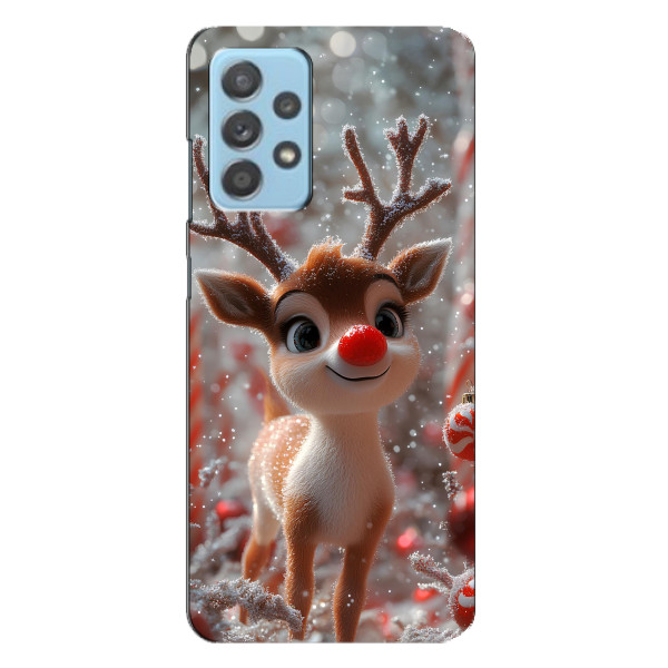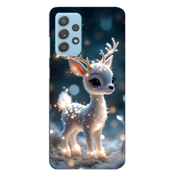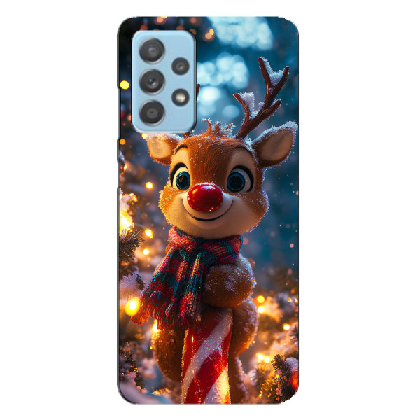Зимняя коллекция принтов с тёплым сказочным настроением: Блестящий оленёнок, Олень в свитере, Олень с носом, Олень с шарфом, Олень среди подарков, Оленёнок в лесу, Оленёнок среди гирлянд, Оленёнок — выбери свой любимый дизайн для Samsung Galaxy A23 (Самсунг А23) и добавь праздничной магии каждый день.