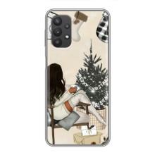 Рождественские, Праздничные Чехлы для Самсунг А32 (5G) - Девушка с елкой