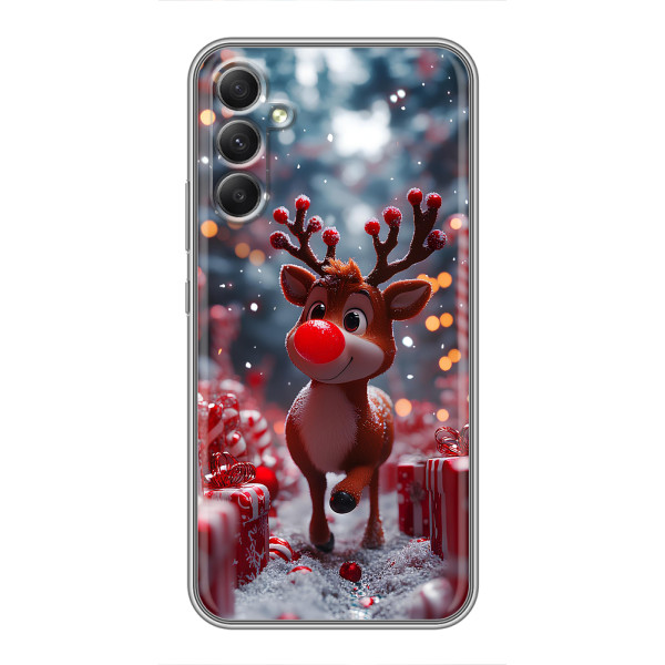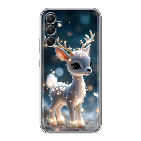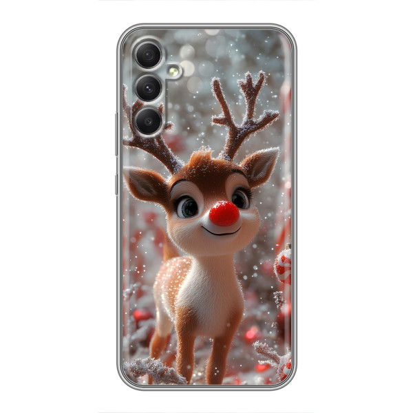 Зимняя коллекция принтов с тёплым сказочным настроением: Блестящий оленёнок, Олень в свитере, Олень с носом, Олень с шарфом, Олень среди подарков, Оленёнок в лесу, Оленёнок среди гирлянд, Оленёнок — выбери свой любимый дизайн для Samsung Galaxy A34 (Самсунг Гелекси А34) и добавь праздничной магии каждый день.