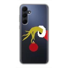 Зимние Чехлы для Самсунг Галакси А35 5G - прозрачный фон - Гринч с игрушкой