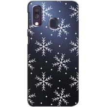 Зимние Чехлы для Самсунг А40 (2019) - прозрачный фон - Белые снежинки