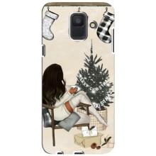 Рождественские, Праздничные Чехлы для Самсунг А шесть двадцать восемнадцать, А шестьсот Ф - Девушка с елкой