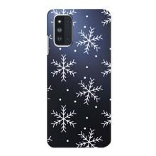 Зимние Чехлы для Самсунг Ф52 - прозрачный фон - Белые снежинки