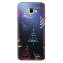 Зимние Чехлы для Самсунг Ж4+, Ж4 Плюс - прозрачный фон - Рождественские елки