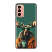 Чехол с принтом стильные животные для Самсунг М13 - Лось с кофе