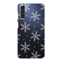 Зимние Чехлы для Самсунг М34 (5G) - прозрачный фон - Белые снежинки