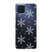 Зимние Чехлы для Самсунг М62 - прозрачный фон - Белые снежинки
