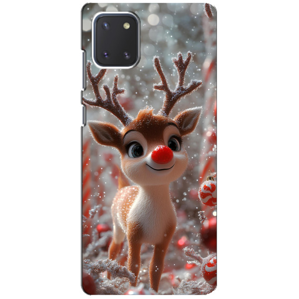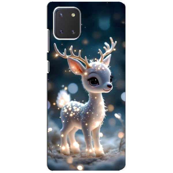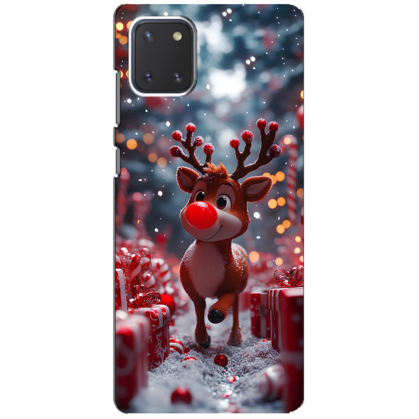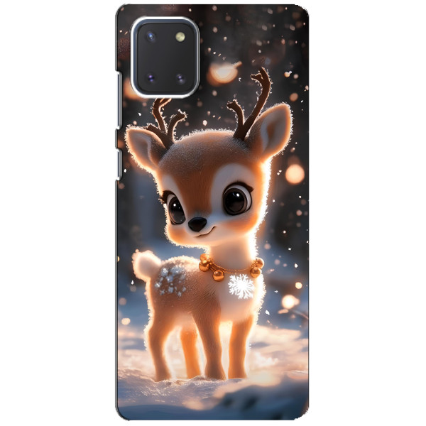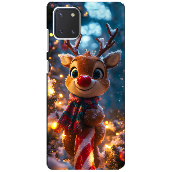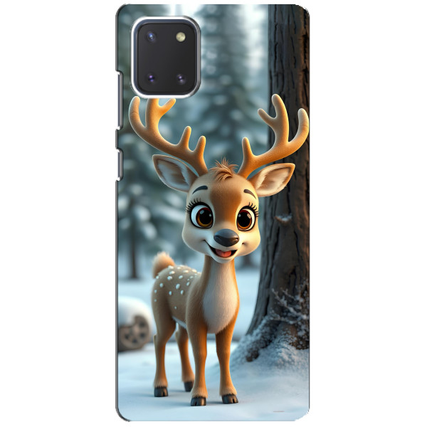 Зимняя коллекция принтов с тёплым сказочным настроением: Блестящий оленёнок, Олень в свитере, Олень с носом, Олень с шарфом, Олень среди подарков, Оленёнок в лесу, Оленёнок среди гирлянд, Оленёнок — выбери свой любимый дизайн для Samsung Galaxy Note 10 Lite (Самсунг Галакси Ноут 10 Лайт) и добавь праздничной магии каждый день.