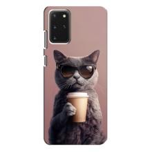 Чехол с принтом стильные животные для Самсунг С20 Плюс - Кот с кофе