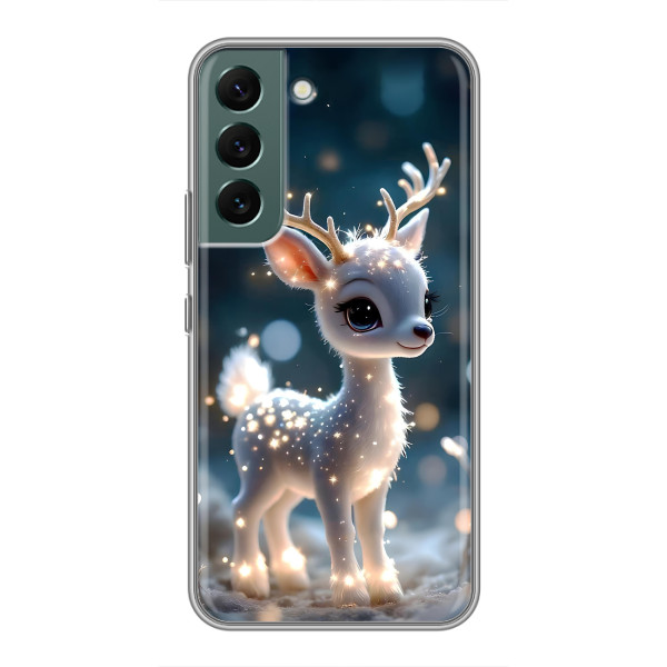 Зимняя коллекция принтов с тёплым сказочным настроением: Блестящий оленёнок, Олень в свитере, Олень с носом, Олень с шарфом, Олень среди подарков, Оленёнок в лесу, Оленёнок среди гирлянд, Оленёнок — выбери свой любимый дизайн для Samsung Galaxy S22 Plus (Самсунг С22 Плюс) и добавь праздничной магии каждый день.