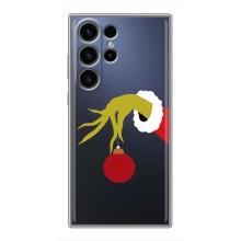 Зимние Чехлы для Самсунг S22 Ультра - прозрачный фон - Гринч с игрушкой