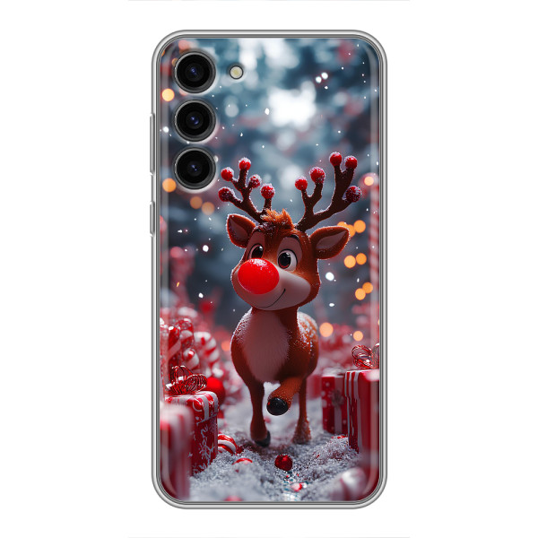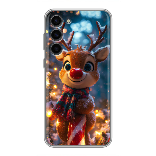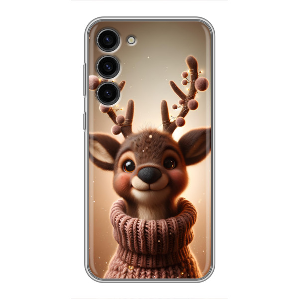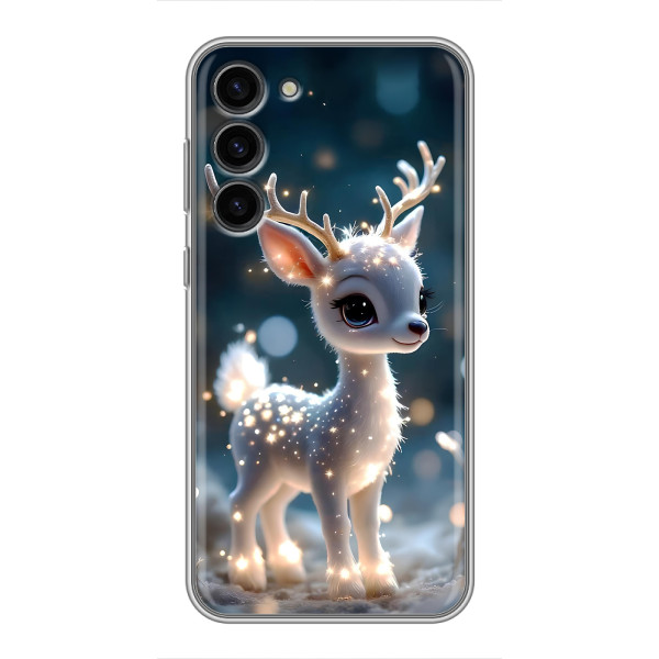 Зимняя коллекция принтов с тёплым сказочным настроением: Блестящий оленёнок, Олень в свитере, Олень с носом, Олень с шарфом, Олень среди подарков, Оленёнок в лесу, Оленёнок среди гирлянд, Оленёнок — выбери свой любимый дизайн для Samsung Galaxy S23 Plus (Самсунг С23 Плюс) и добавь праздничной магии каждый день.