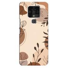 Чехол с цветочным принтом на Техно Камон 16 СЕ - Коричневые цветы