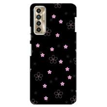 Чехол с розовым рисунком для TECNO Camon 17P (CG7n) - Розовые цветы на черном