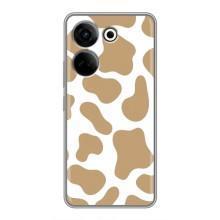 Чехол с принтом коровы на ТЕХНО Камон 20 - Бежевый принт