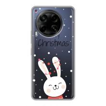 Зимние Чехлы для Техно Камон 30 - прозрачный фон - Рождественский заяц