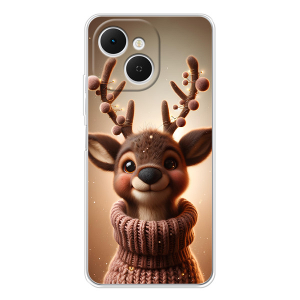 Зимняя коллекция принтов с тёплым сказочным настроением: Блестящий оленёнок, Олень в свитере, Олень с носом, Олень с шарфом, Олень среди подарков, Оленёнок в лесу, Оленёнок среди гирлянд, Оленёнок — выбери свой любимый дизайн для TECNO Spark 40C (Телефон можно записать как: ТЕКНО Спарк 40С.) и добавь праздничной магии каждый день.