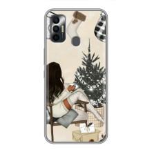 Рождественские, Праздничные Чехлы для Техно Спарк 7Р - Девушка с елкой