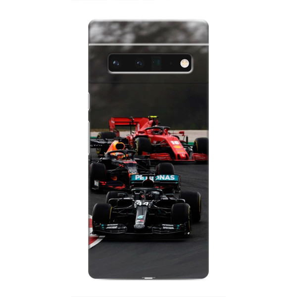 Захистіть свій Гугл Піксель 6 Про стильним і функціональним чохлом на тему Формула 1! Наш гнучкий силіконовий чохол забезпечує надійний захист вашого телефону від ударів, подряпин і потертостей, зберігаючи його первозданний вигляд. Завдяки яскравому ультрафіолетовому друку, кожна деталь малюнка, що включає Болід, Гонка Ф1, Колаж ф1, Лого Ф1 та інші елементи спорту, відтворена чітко і насичено.