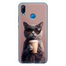 Чохол з принтом стильні тварини для P20 Lite 2019 - Кіт з кавою