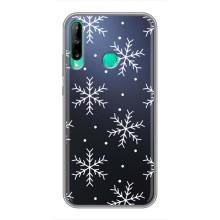 Зимні Чохли для Хуавей Р40 Лайт е - прозорий фон - Білі сніжинки