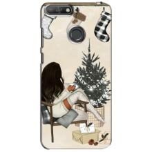 Різдвяні, Святкові Чохли для Хуавей Y6 Прайм 2018 - Дівчина з ялинкою